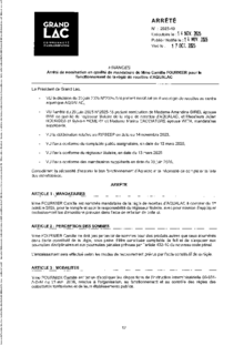 Finances : Arrêté n°2025-49 : Arrêté de nomination en qualité de mandataire de Mme Camille FOURNIER pour le fonctionnement de la régie de recettes d’AQUALAC1 documentPublié le 14 novembre 2025 Ar_2025-49.pdf Télécharger(pdf, 437,8 Ko)PrécédentRetour à la listeSuivant