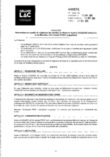 Finances : Arrêté n°2025-52 : Nomination en qualité de régisseur de recettes de Madame Sophie CASSARO (titulaire) et de Monsieur Christophe PIRAT (suppléant)1 documentPublié le 17 novembre 2025 Ar_2025-52.pdf Télécharger(pdf, 500,6 Ko)PrécédentRetour à la listeSuivant