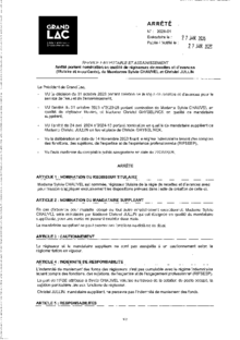 Eau potable : Arrêté 2026-01 : Arrêté portant nomination en qualité de régisseurs de recettes et d’avances (titulaire et suppléants), de Mesdames Sylvie CHAUVEL et Christel JULLIN1 documentPublié le 28 janvier 2026 Ar_2026-01.pdf Télécharger(pdf, 512,8 Ko)PrécédentRetour à la listeSuivant